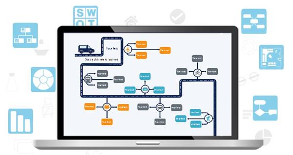操作方面,用户只要从符号库里拖拽图形,放入绘图画布上,经过简单组合就可以生成漂亮的作品。并可以通过设置主题,效果和快速样式,对绘图作品做进一步的提升。通过自动对齐和排列图形等功能,还可让绘图更有效率。