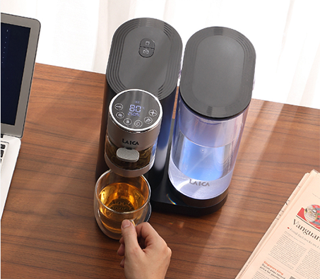 LAICA莱卡净饮泡茶一体机通过意大利原装进口双滤芯将自来水净化为干净直饮的矿物质水,且4秒内就能输出99℃的沸水,而泡茶也仅需一键就能智能洗冲泡,并在45秒内为你泡出一杯唇齿留香的好茶。