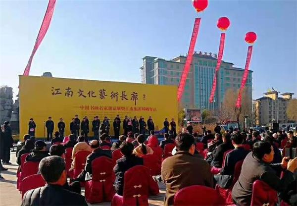 陈同洲在书画展开展仪式上致辞并宣布“水墨江南文化艺术长廊——中国书画名家邀请展”开幕。他说,近年来,青州市委、市政府大力实施“文化强市”战略,全力打造“东方花都 翰墨青州”品牌,全市文化事业蓬勃发展,先后荣获“国家历史文化名城”“全国文化先进市”“中国民间文化艺术之乡”“中国农民画之乡”“中国收藏文化名城”等称号。画展的开幕为青州市的文化强市建设开启了一扇亮丽的窗口。本次“水墨江南文化艺术长廊——中国书画名家邀请展”,是江南温泉度假村在店庆十周年之际推出的重要活动,展出的作品来自24位著名书画家,其中有四川省诗书画院特骋画家、四川省美术家协会花鸟画专委会委员萧二,当代著名女画家、中国美术家协会会员崔连文,国家一级美术师、北京春雨堂书画研究会研究员崔亚荣等。300余幅作品或龙飞凤舞或莺歌燕语,给寒冷的冬天带来了缤纷的四季。参观者们三五成群,在书画中穿梭流连,为书画大家们高超的艺术水平所折服。书画家们来自北京、深圳、湖北等全国各地,青州市民们都为能够近距离认识他们感到非常高兴,很多人在畅谈之余,互留微信,许下了“多交流”的承诺。