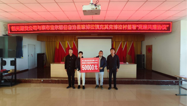 在察布查尔县,马隽鸿代表创元期货与琼博拉镇克其克博拉村签订了《“人居环境整治”项目捐赠协议》,定向捐赠资金5万元,助力该村绿化美化村容村貌,提升人居环境质量。