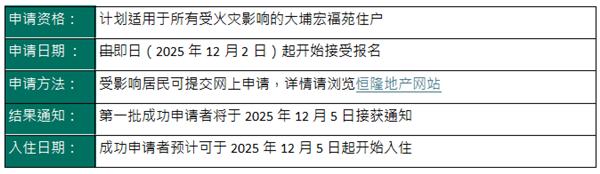 如有任何关于申请的查询,请电邮至 CorpComm@HangLung.com 或致电 +852 2879 0338(热线时间:周一至周五上午9时至下午1时;下午2时至6时)与恒隆“大埔宏福苑火灾赈灾基金”工作小组联络。