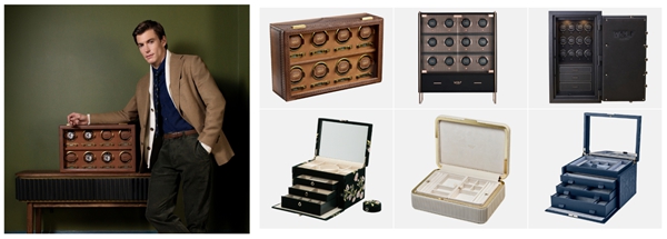 Brogue 8 位自动腕表上链盒, Brogue 8 位自动腕表上链盒, Axis 12 位自动腕表上链收藏柜, Athos 12 位自动腕表上链保险柜, Zoe 大型珠宝盒, Bella 大型珠宝盒, WOLF x Liberty Ianthe 印花大型珠宝盒