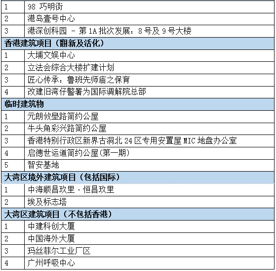 评审小组委员会主席谢伟正工程师表示:“评审团在整个评选过程中,尤其重视项目如何将智慧科技、环保理念与以人为本的设计融为一体。本届大湾区及国际项目的积极参与,为大奖注入更广阔的视野。我们期待在最后汇报中,深入了解入围团队的设计理念与实践成果,共同见证建筑界的新崭成就。”