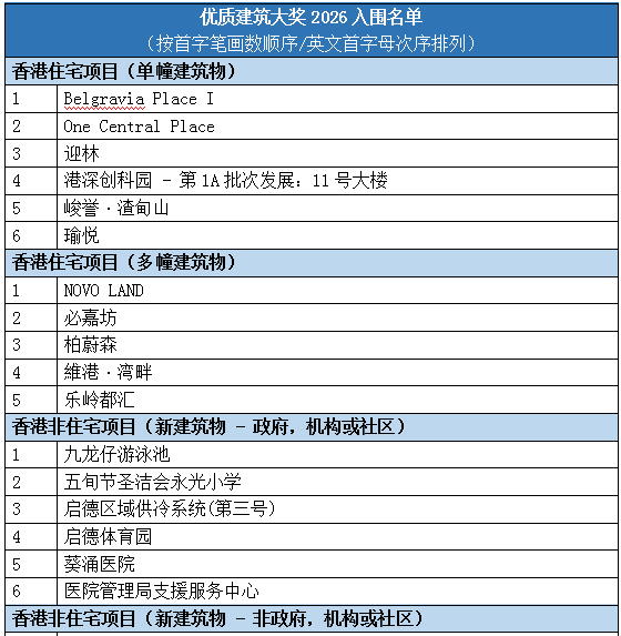 香港 -Media OutReach Newswire- 2026年3月17日 – 备受业界瞩目的优质建筑大奖2026(QBA 2026),今日正式公布入围名单。合共35个优秀项目团队成功晋级最后汇报阶段,将于本周六(3月20日及3月21日)向评审团展示其卓越成果,竞逐“建筑界奥斯卡”的最高荣誉。