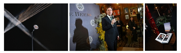 此外,嘉宾们还欣赏了来自De Beers London典藏的跨越百年设计历程的珍贵作品,其中包括Talisman Wonder——一件由691颗天然钻石原石与抛光沙漠钻石匠心打造的绝美孤品。