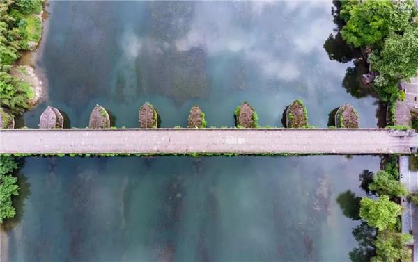 登封桥是上齐云山的必经之桥,历经400多年的古桥,古朴庄严的静卧在横江之上。桥面用青石板铺就,10墩9孔的桥身远远看去,既像一叶叶小舟,又似一叶叶莲瓣凌驾在碧水之中。