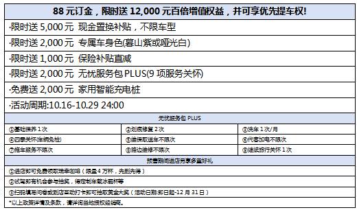 伴随预售价的发布,北京现代也同步推出了EO羿欧极具诚意的限时权益:支付88元订金,限时送12,000元百倍增值权益,并享优先提车权。