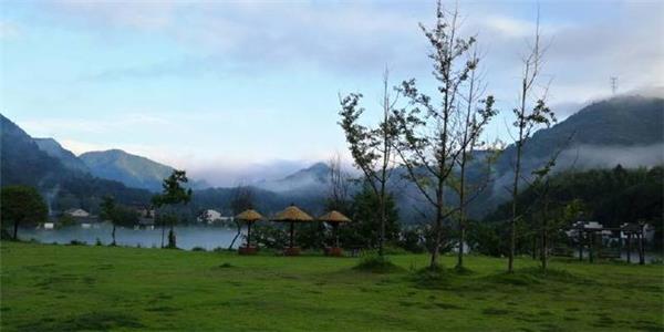 位于青龙湾下游,交通便利,设施齐全,是摄影烧烤基地。清晨,湖面上薄雾飘渺,山谷中云雾缭绕,波光潋滟的山间平湖与四周峰峦叠嶂的山脉形成了山水一色的美丽画卷。