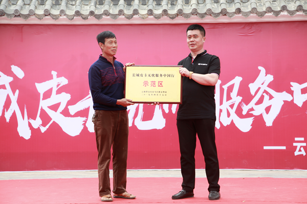 近年来,随着马白镇的经济发展,当地皮卡保有量呈现逐年增长的态势。截止目前,马白镇的皮卡市场保有量已超500辆,并有着巨大的市场潜力。为服务好现有客户,满足潜在客户的选车需求,长城皮卡特设置马白镇为“无忧服务示范区”,提升消费者用车体验、售后体验,营造无忧用车环境。