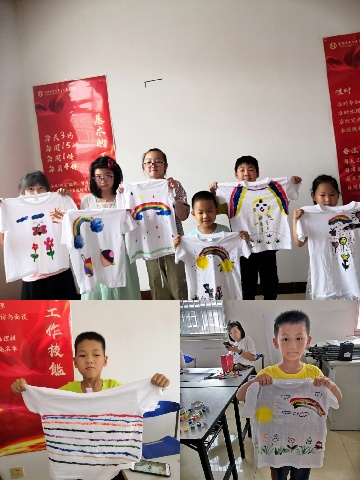 活动中,小朋友们根据自己的喜好,在T恤上描绘喜爱的图画,对色彩、板块按照自己的思路创造。本次活动共有10位小朋友参与,孩子们的想法真是别具一格,每个孩子的T恤图画都是一副完美的作品。