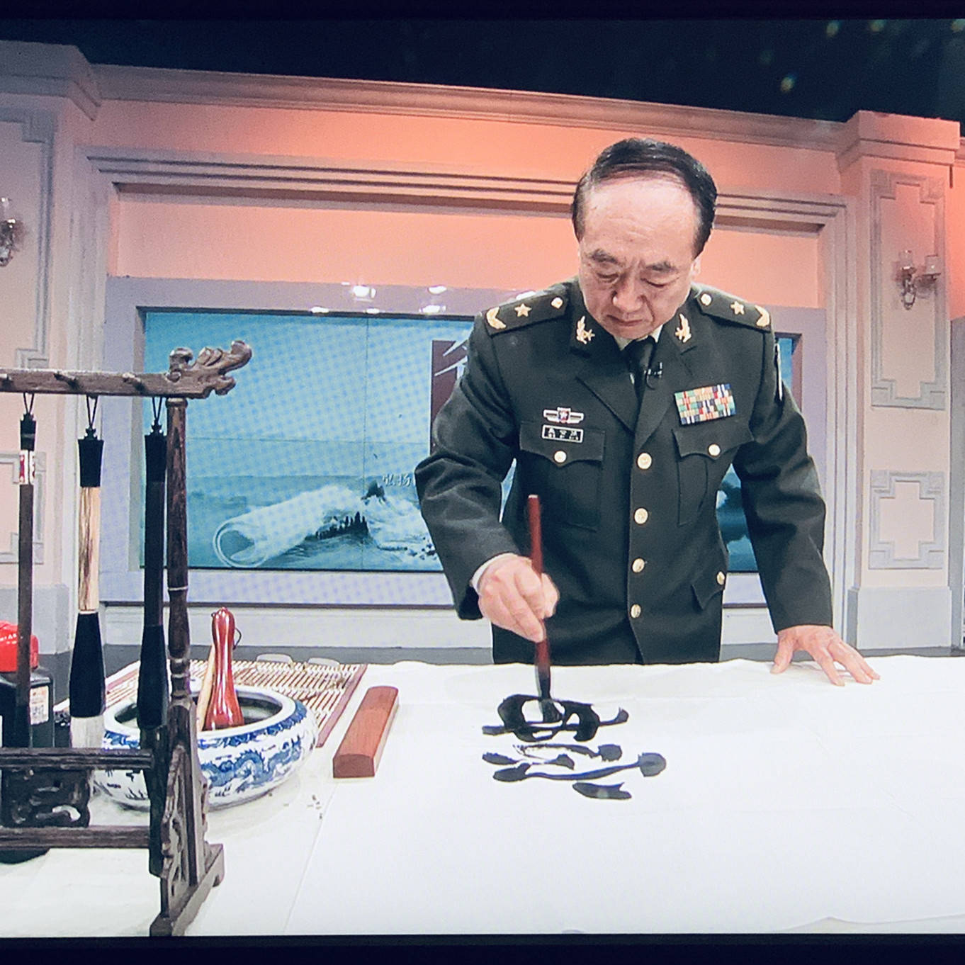 孟世强为人谦和、热情,他尊崇“先人品后艺品”的准则,不论是朋友、同事、书画界同仁,提起孟世强的为人无不赞赏有加。孟世强将军8岁便秉承父训习书,一生对书法艺术痴迷执着,乐此不疲。四十余年的军旅生涯中,从空军,调武警,进军博,先后任师、军职领导干部。无论走到哪里,工作多忙,他从未间断过对书法的学习。特别是他曾扎根大西北29年,部队所在地绝大多数都是在两三千米人迹罕至的高原。在无尽的寂寞和孤独中,他都是以笔墨为友,以苦为乐,他甚至把练习书法作为锻炼身体的途径,在不断的提气、换气、运气、呼气的吐纳之中,实现内外兼修。孟世强将军是建国以来全军唯一一个担任过省级书法家协会主席之军人。