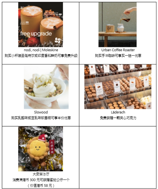 香港国际机场联同多个人气品牌推出圣诞限定优惠,包括 nodi 免费饮品升级、Urban Coffee Roaster 手冲咖啡买一送一、Slowood 半价雪糕优惠、Läderach 免费夹心巧克力和大安茶冰厅蛋挞公仔赠品等。立即浏览圣诞专页,发掘更多节日消费优惠!
