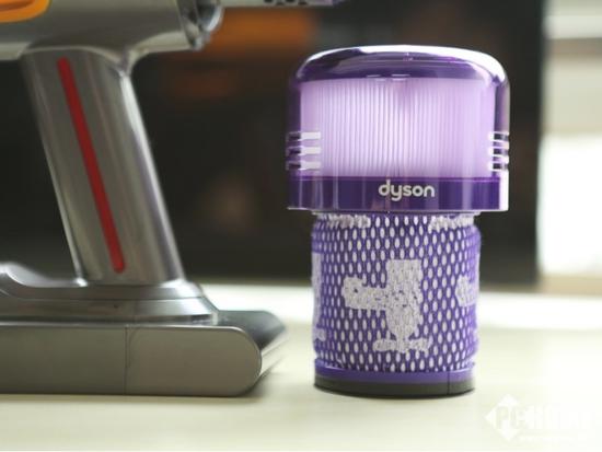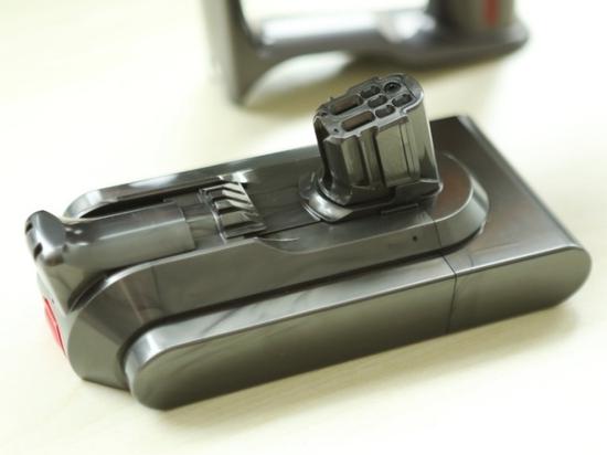 机身底部位置的电池模块部分也支持拆卸更换,解决了消费者一直以来对于戴森吸尘器产品诟病已久的续航时间短的问题,清洁面积较大的用户可以通过多配备电池来实现持续的清洁。