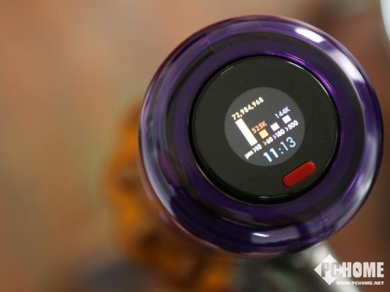 值得一提的是这一次的背部,戴森V12系列在圆形的LCD显示屏幕上增加了颗粒物检测功能,通过尘桶入口位置集成的压电式传感器可以实时监测清洁区域>10μm、>60μm、>180μm和>500μm的颗粒物数量,方便用户根据不同区域的颗粒物数值选择性的进行更深层次的清洁。